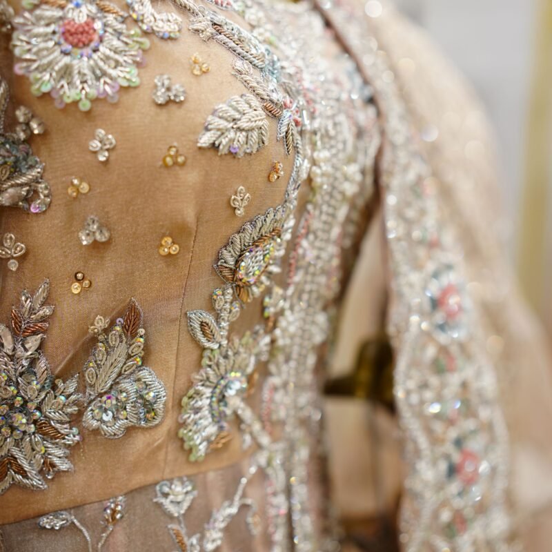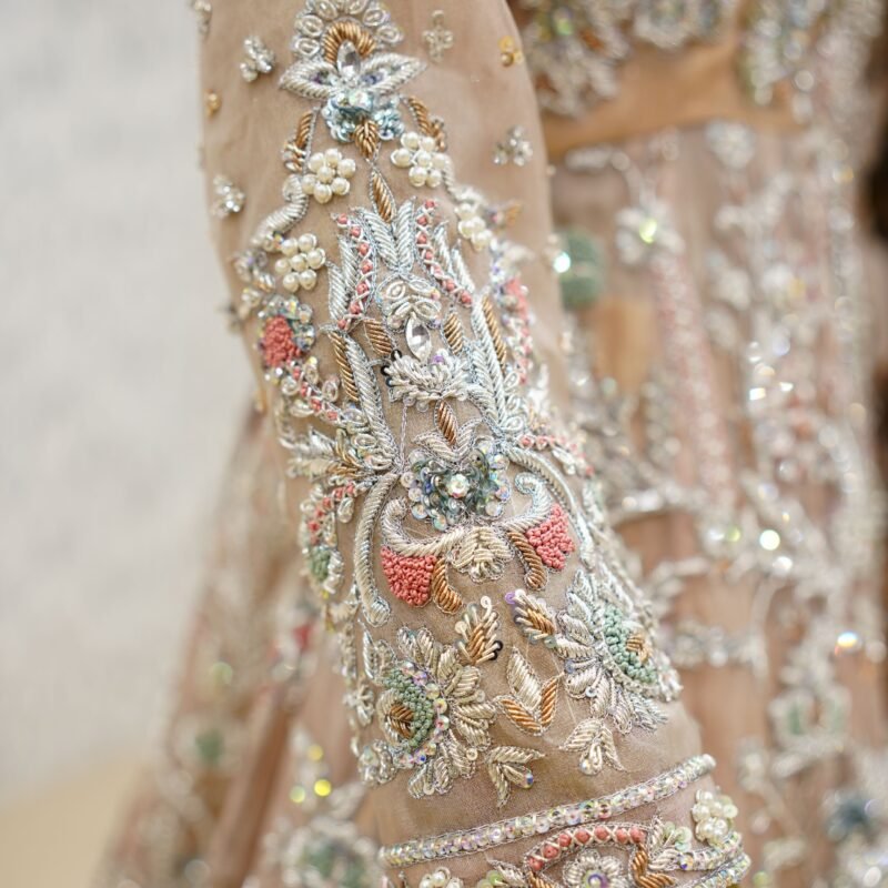 • Work Technique: Intricate dabka, sequins, pearl & Italian stone embellishments